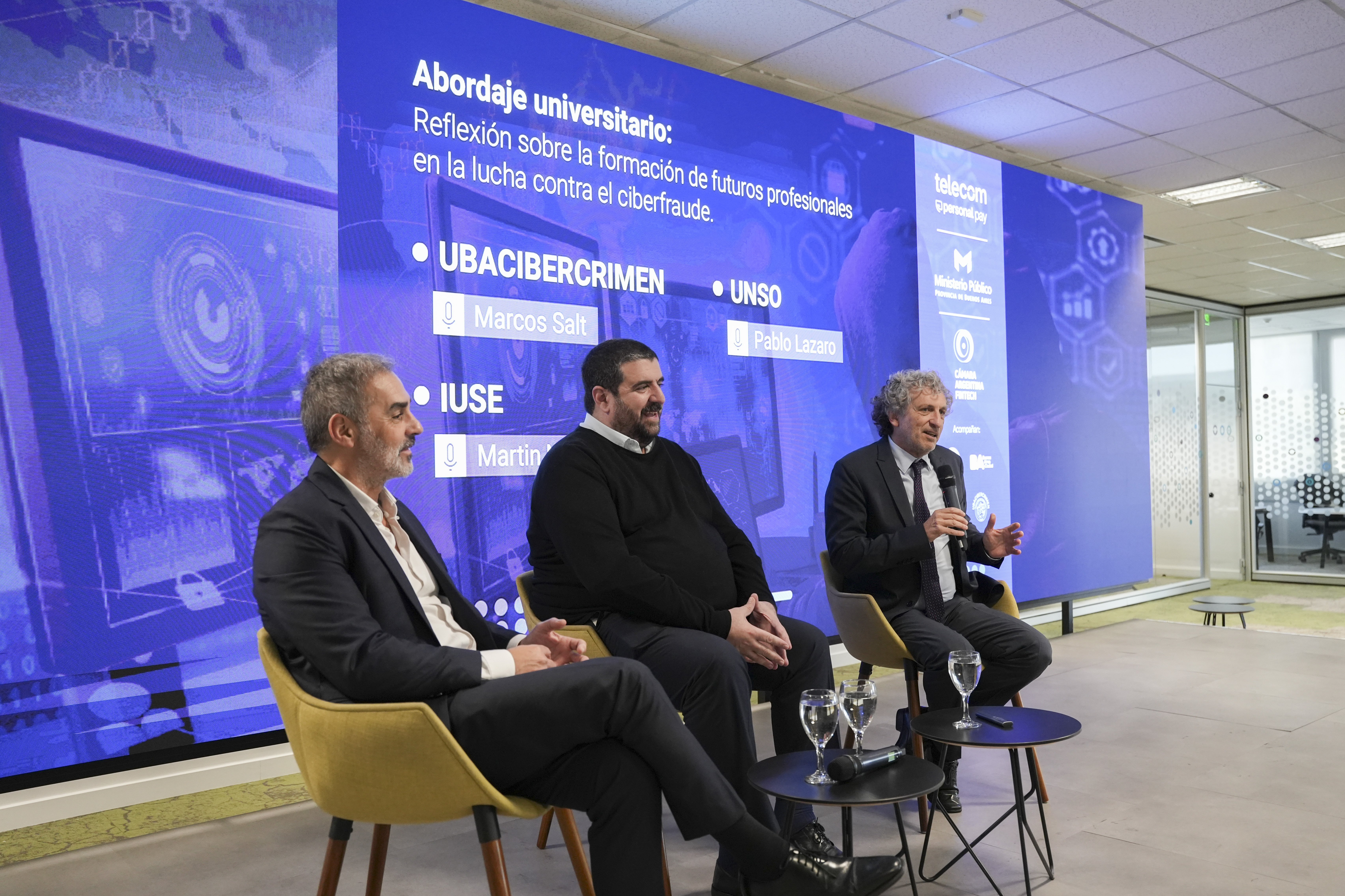 Por su parte, Marcos Salt de UBA Cibercrimer y Pablo Lazaro de UNSO disertaron sobre “Abordaje universitario”: reflexionar sobre el rol de la universidad y los espacios académicos en la formación de futuros profesionales en la lucha contra el ciberfraude. Y acerca de pensar articulaciones posibles entre el mundo académico, el sector privado y el sector público.