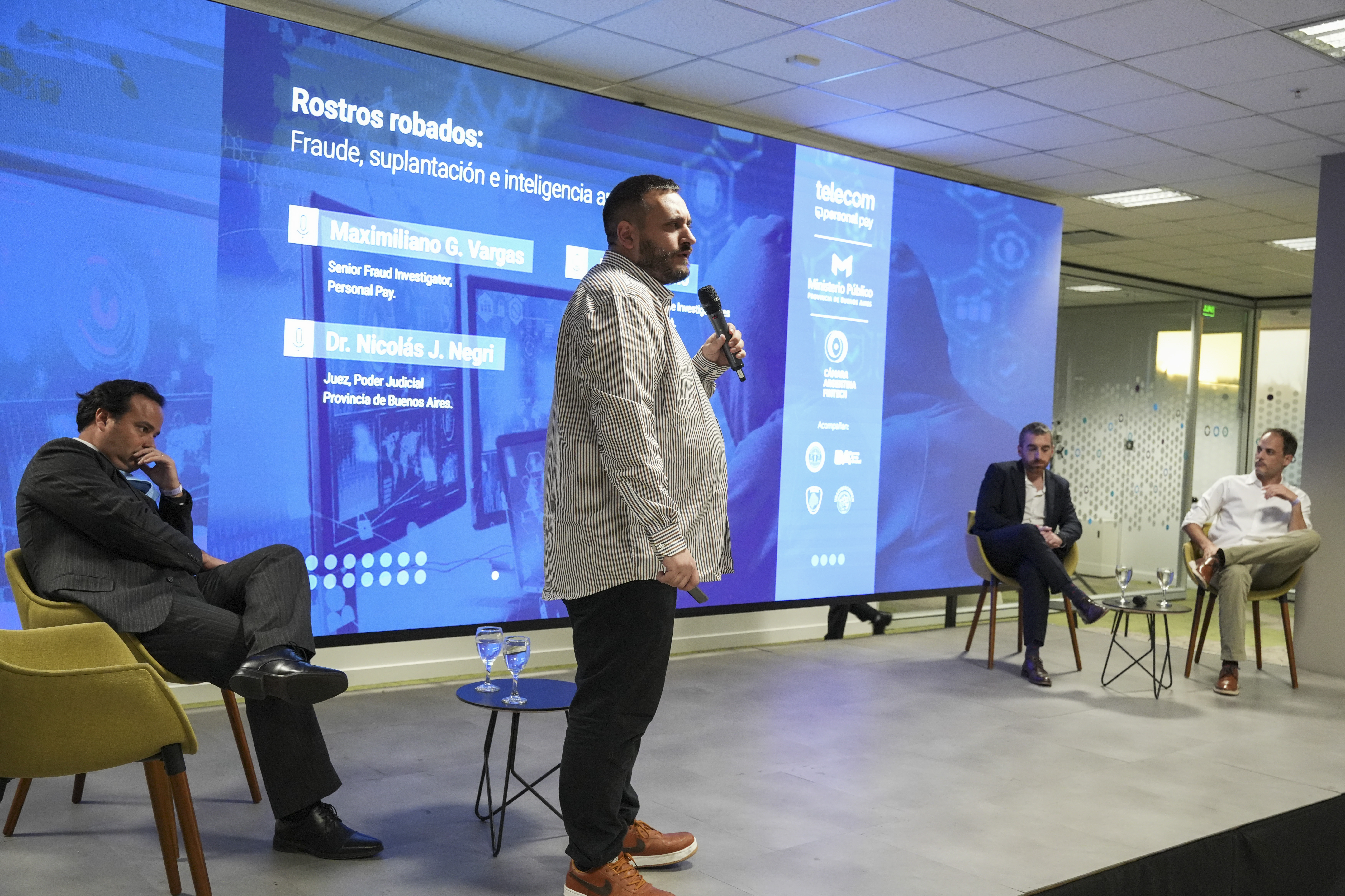Finalmente, expusieron sobre “Rostros robados: fraude, suplantación e inteligencia artificial” y “Trazando el Rumbo”, Gastón Benoit, Senior Fraud Investigator (Personal Pay) y Jorge Moreno, Director del Cuerpo de Investigaciones Judiciales (MPF de CABA).