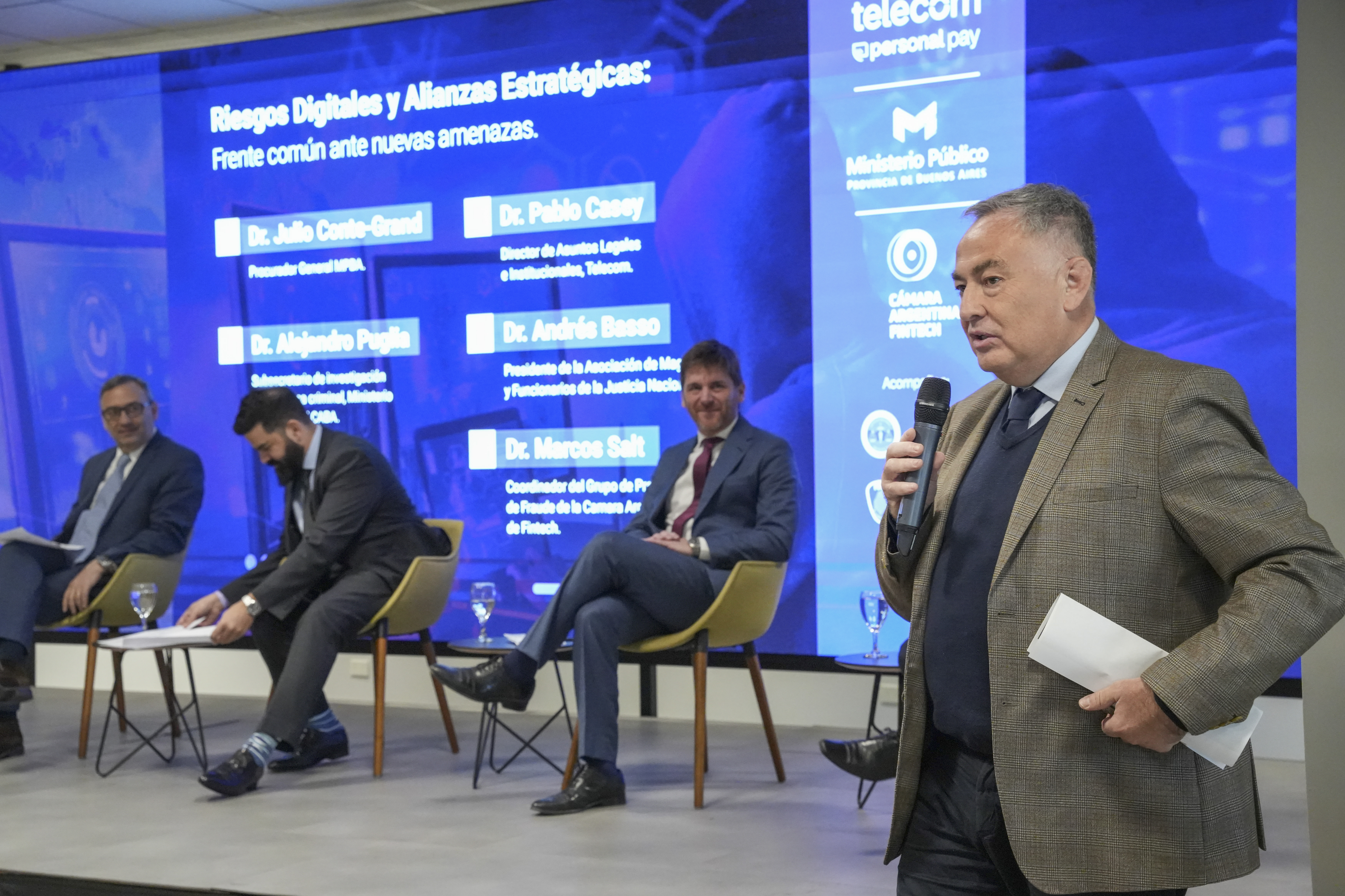 Las palabras de apertura estuvieron a cargo del Dr. Julio Conte-Grand, Procurador General; del Lic. Mario Lopez, Presidente de la Cámara Argentina Fintech; del Dr. Pablo Casey, Director de Asuntos Legales e Institucionales de Telecom; del Dr. Alejandro Puglia, Subsecretario de Investigación y Estadística Criminal del Ministerio de Seguridad de CABA; y del Dr. Andrés Basso, Presidente del Colegio de Magistrados y Funcionarios de la Justicia Nacional.