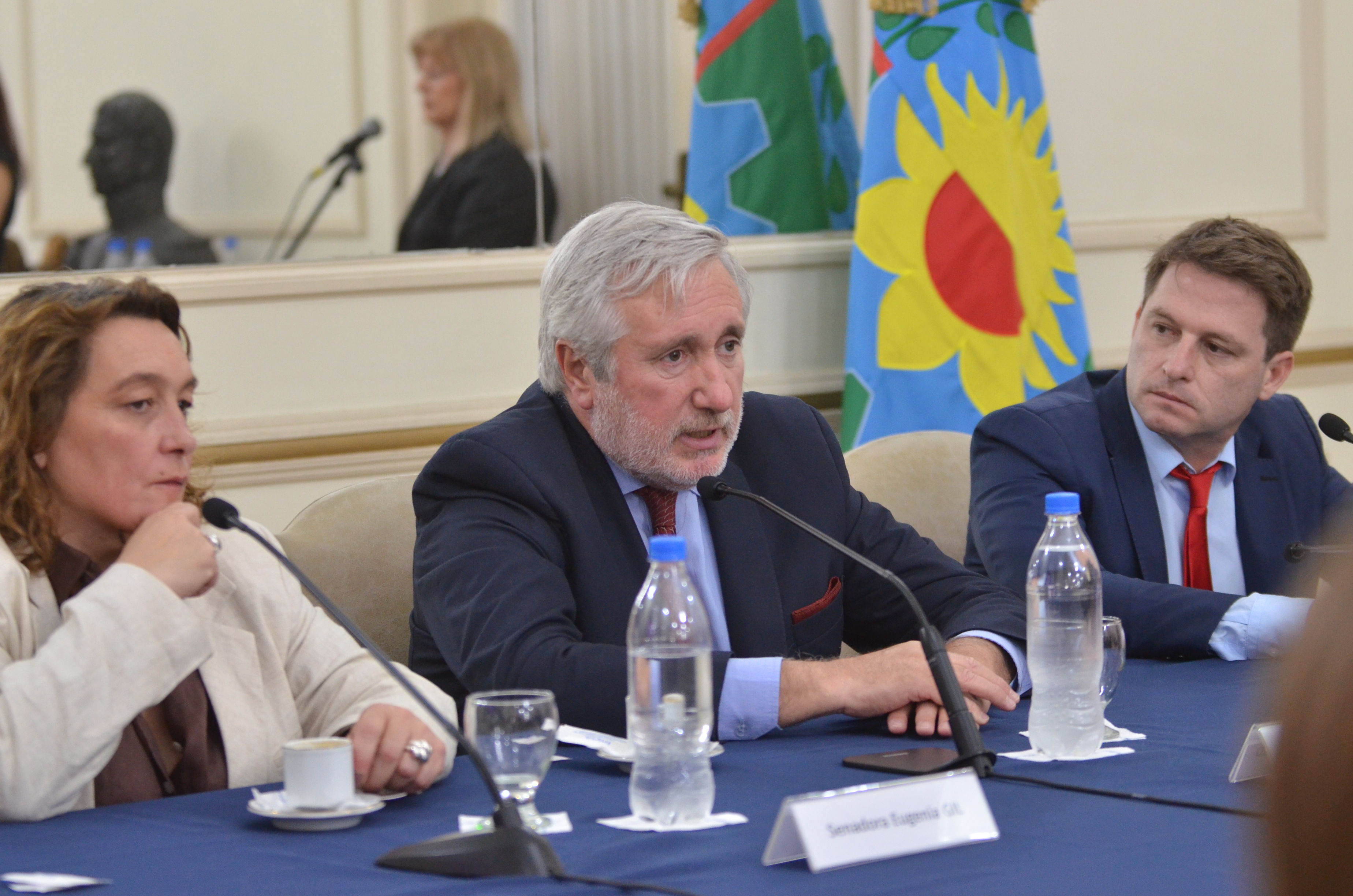 La apertura de la conferencia estuvo a cargo del Procurador General, Dr. Julio Conte-Grand y contó con la presencia de los Senadores provinciales Alex Campbell, María Eugenia Gil, Nerina Neumann, Lorena Mandangarán y Yamila Alonso y el Defensor Adjunto Luis Ferella.