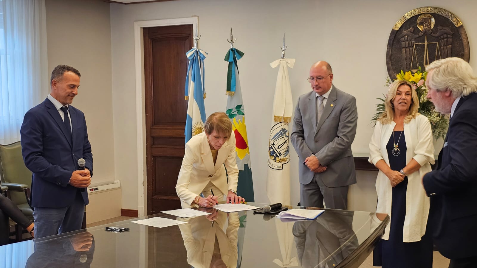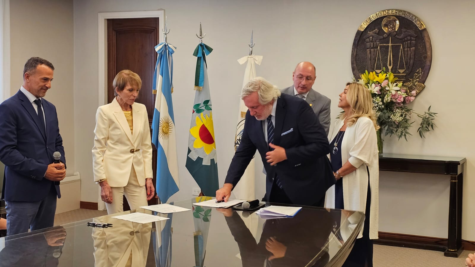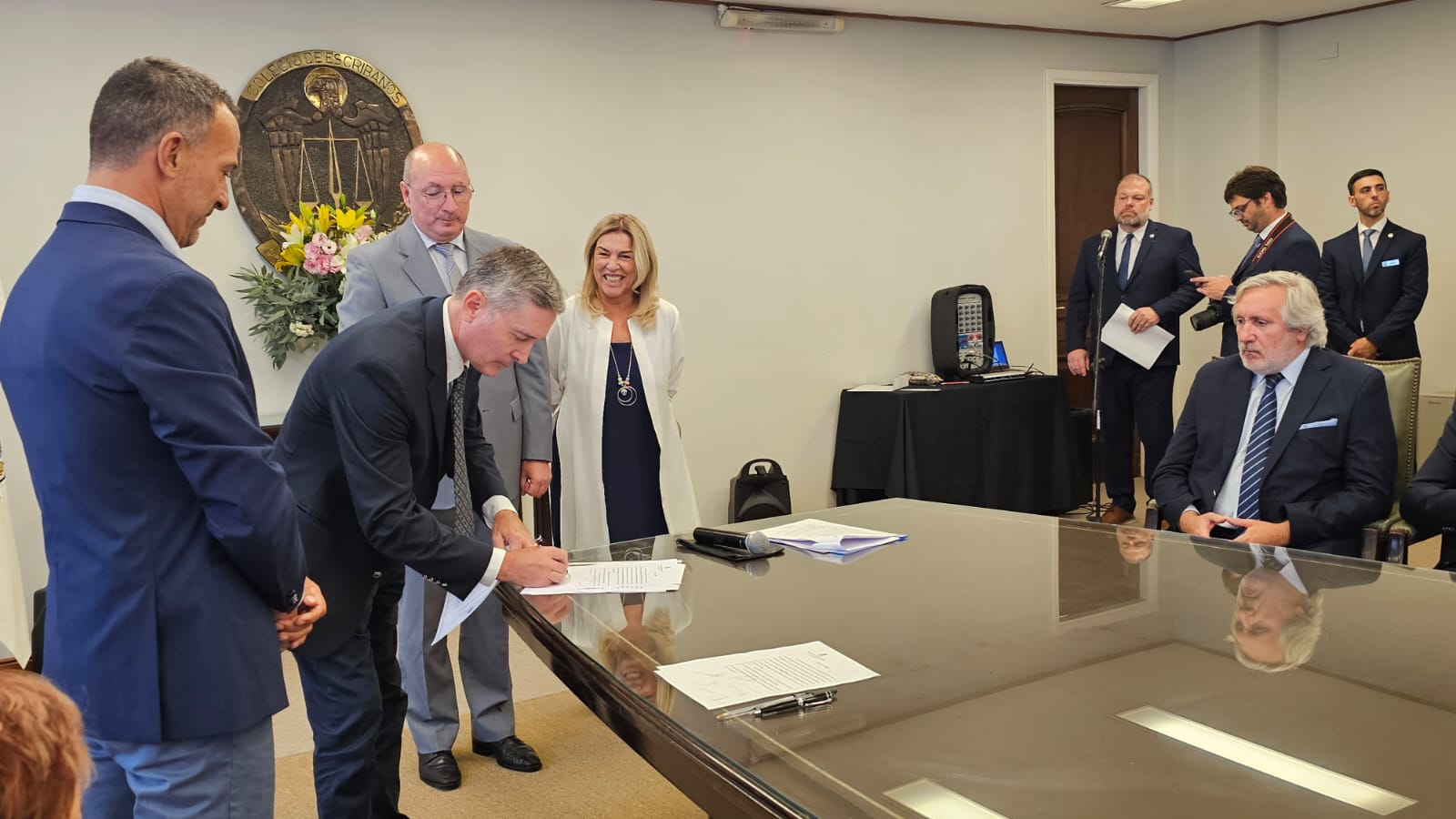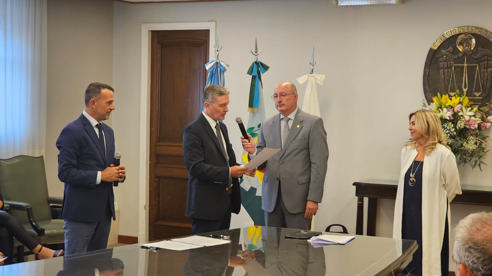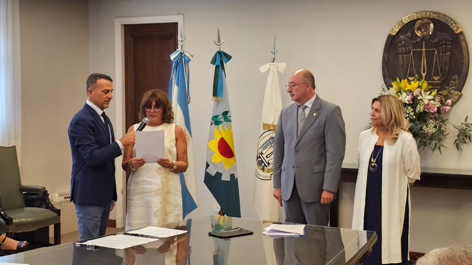 En la ceremonia estuvieron presentes el Presidente del Colegio, Guillermo Longhi; el Vicepresidente 1°, Maximiliano Molina; la Vicepresidente 2º, Sabina Podrez Yaniz; el Juez Notarial de la provincia de Buenos Aires, Dr. Rafael María Chaves; la Inspectora General del Colegio, Paula Marello; la Secretaria de Asuntos Previsionales, Paula Velilla; el Secretario de Relaciones Institucionales, Agustín Sáenz; el Secretario de Administración, Francisco Barreto Peltzer; el Secretario de Informática, Andrés Martínez; la Tesorera, Beatriz Aguirre; y el Protesorero, Santiago Scattolini.