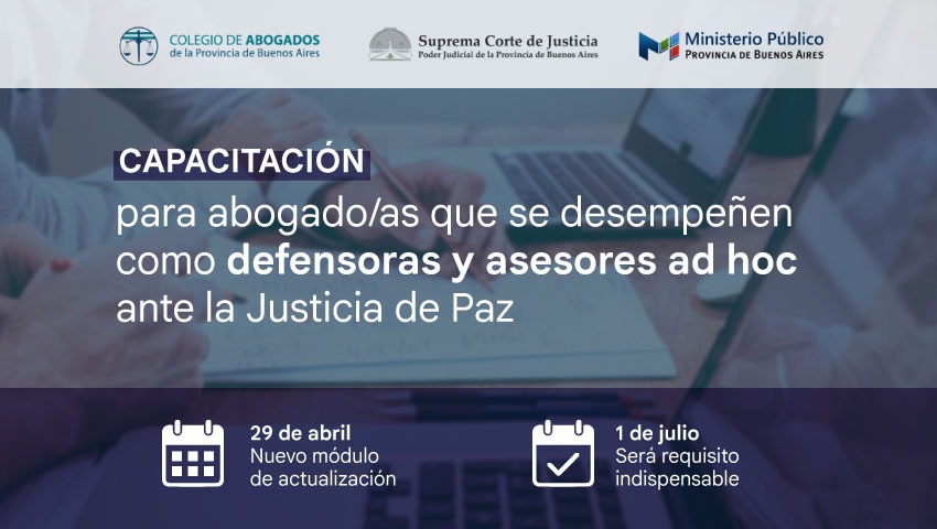 Capacitación 2026 para defensores y asesores ad hoc ante la Justicia de Paz