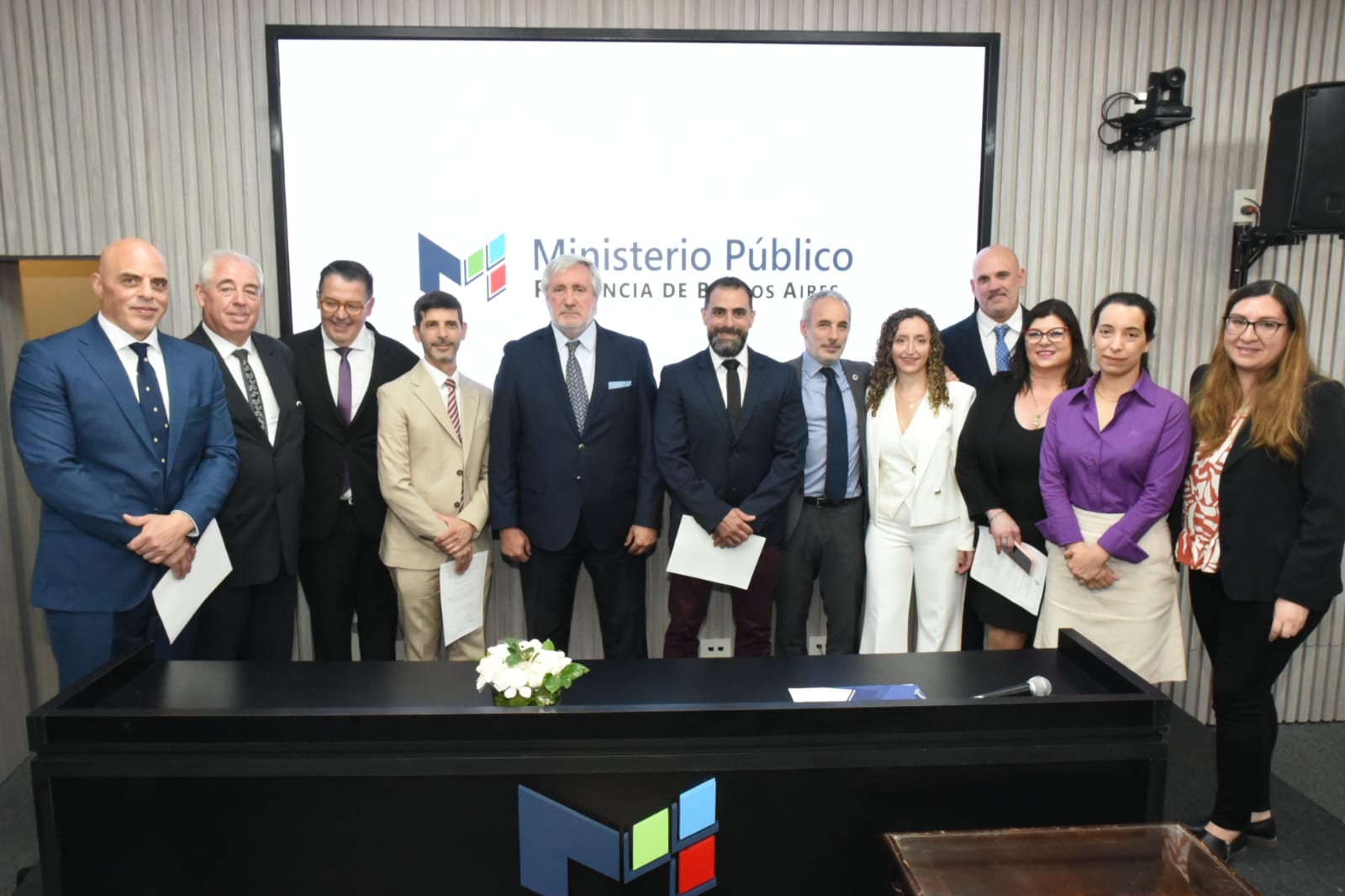 También estuvieron presentes el señor Ministro de Justicia y Derechos Humanos de la provincia de Buenos Aires, Dr. Juan Martín Mena; la fiscal de Casación, Dra. Daniela Bersi; fiscales de Cámara, seretarios y subsecretarios de la Procuración General, entre otros funcionarios, familiares y amigos.